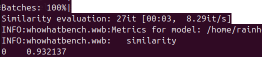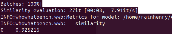 wwb --target-model /home/rainhenry/AIGC/20251119_PTLLNL/Qwen3-4B-int4-ov --gt-data gt.csv --model-type text结果如图: