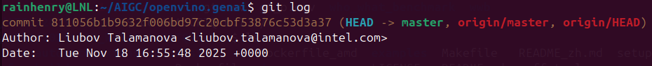 git clone https://github.com/openvinotoolkit/openvino.genai.git然后这里我使用的 commit 值为 811056b1b9632f006bd97c20cbf53876c53d3a37